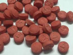 ၁ စာတမ္းတစ္ဖက္စီပါ အနီေရာင္ စိတ္ႂကြ႐ူးသြပ္ေဆးျပား (၃၈ဝဝ)ျပား၊ အေလးခ်ိန္